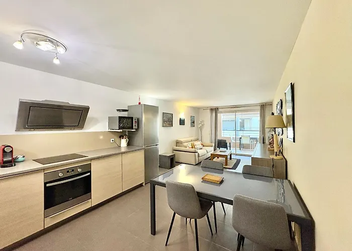 Im Appartement Centrale A 100 M Des Plages Rue De Provence stehen Gästen ein Balkon, eine Sitzecke und eine voll ausgestattete Küche mit einer Klimaanlage und einer Waschmaschine zur Verfügung. Das Apartment verfügt über ein Badezimmer mit einem Haartrockner, Handtüchern und Hausschuhen. Sie können sich auch eine Dusche genießen.
